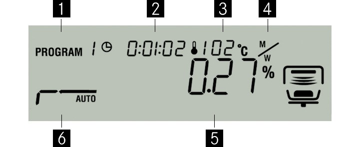 Podsvícený grafický displej s výškou číslic 15 mm přehledně zobrazuje celý průběh měření – od aktivního sušení přes aktuální teplotu až po zvolený topný profil a aktuální obsah vlhkosti. Poslední naměřená hodnota zůstává na displeji až do zahájení další analýzy, což usnadňuje dokumentaci i kontrolu výsledků.